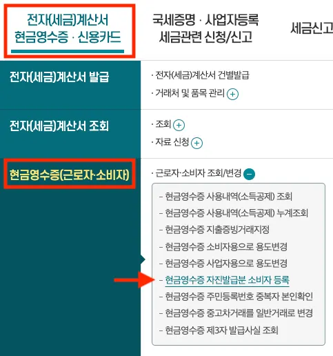 클래스를 신청하실 때 현금영수증을 발급하지 않으셨다면, 국세청 홈택스에서 자진발급분에 대해 소비자 등록을 진행하실 수 있습니다.