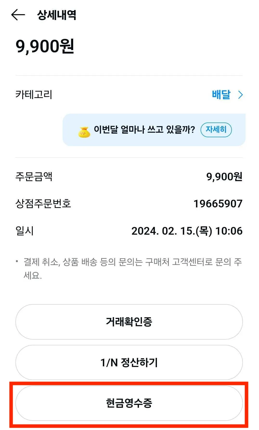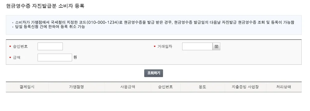 현금영수증을 신청하지 않으셨다면, 상점주문번호와 일시를 확인하신 뒤, 홈택스에서 자진발급 신청해주시면 됩니다.