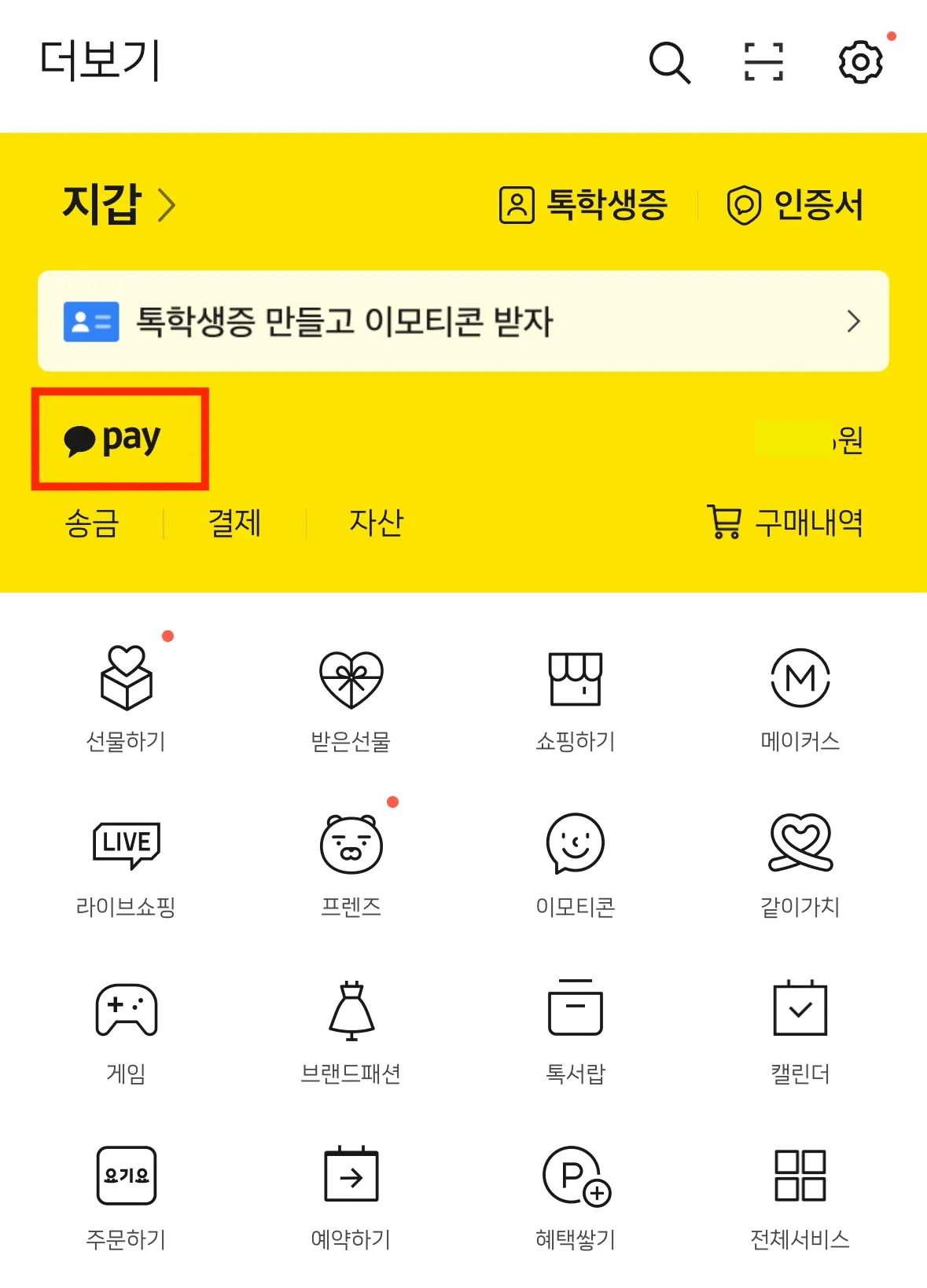 카카오톡 하단의 더보기(∙∙∙) 클릭하기