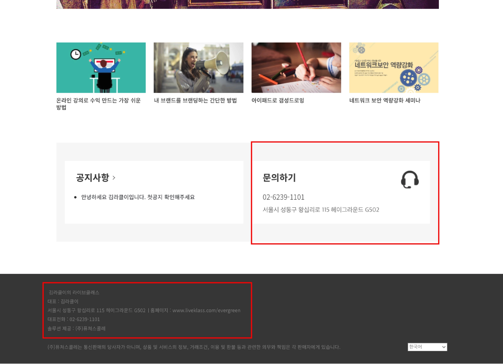 혹시 사이트에 운영자에게 연락할 수 있는 방법이 없다면 라이브클래스에 말씀해주세요.