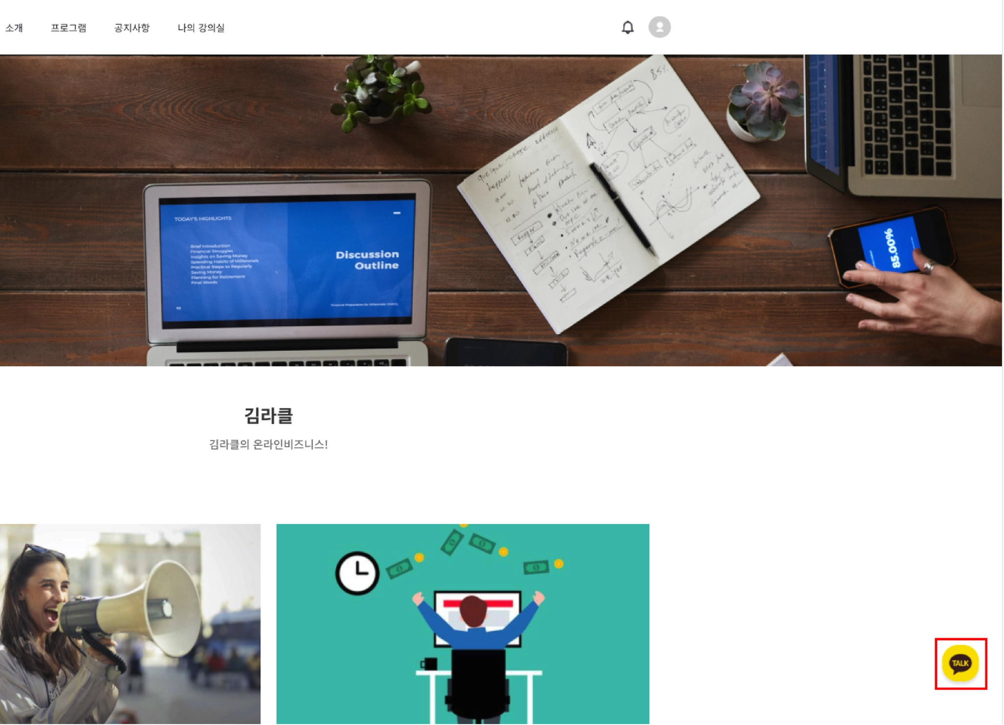 가입하신 사이트의 오른쪽 아래에 카카오톡 아이콘을 클릭합니다.