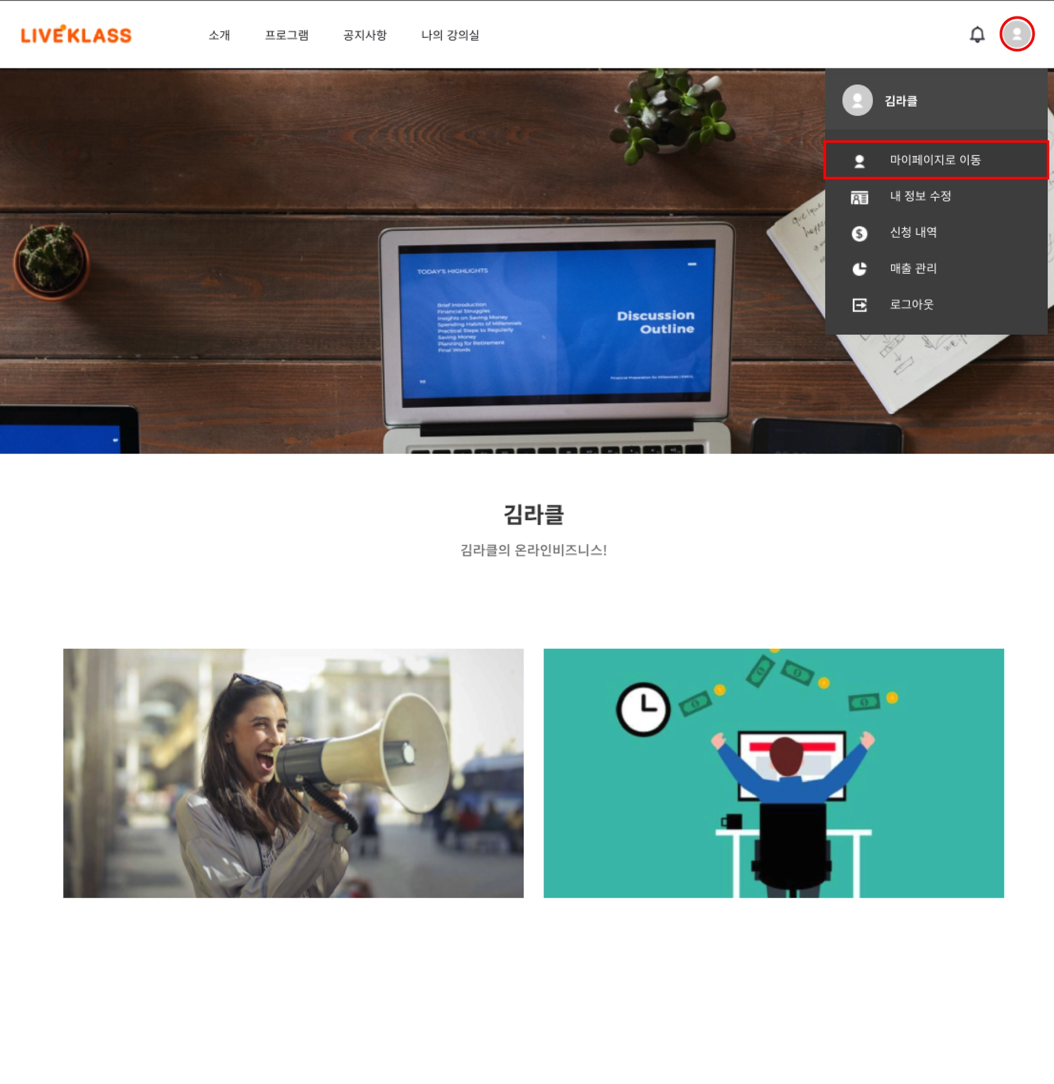 2. 프로필이미지를 클릭 후 마이페이지로 이동
