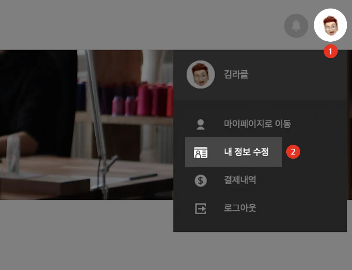 PC 또는 모바일 웹페이지 우측 상단의 프로필 클릭