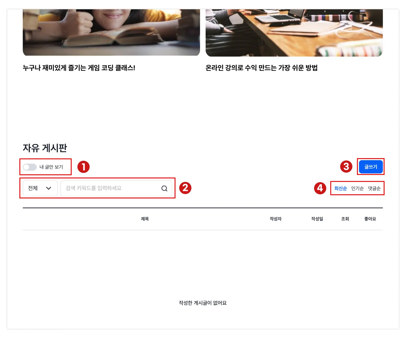 강사가 클래스 게시판을 사용하지 않는다면, 클래스 게시판이 보이지 않습니다.