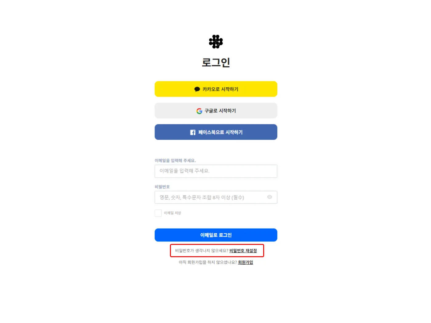 비밀번호 재설정을 통해 로그인 하실 수 있어요!