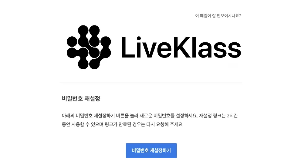 비밀번호 재설정 링크의 유효 시간은 2시간입니다.