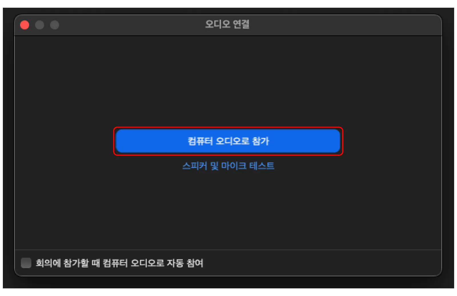 처음 입장할 때, 컴퓨터 오디오로 참가를 선택해 주세요.