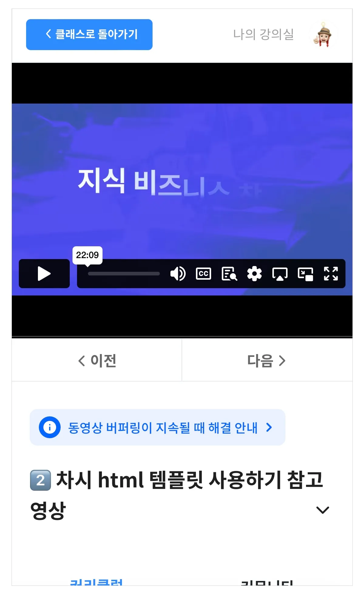 첫 강의에서는 [< 이전] 버튼이 활성화되지 않습니다.