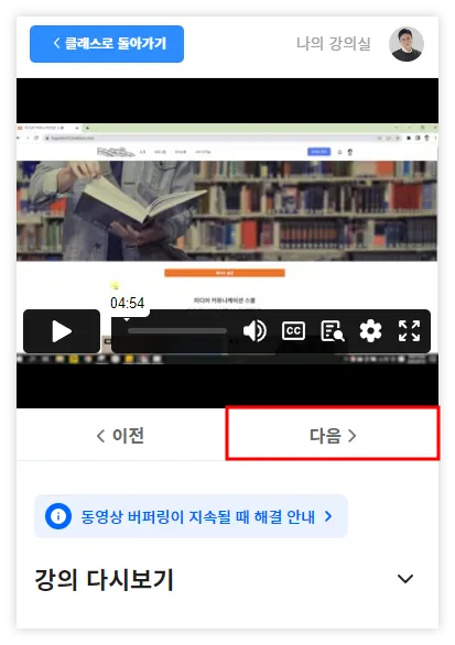 강사 또는 운영자의 설정에 따라, 영상을 마지막까지 시청해야만 다음 강의로 이동이 가능할 수 있습니다.
