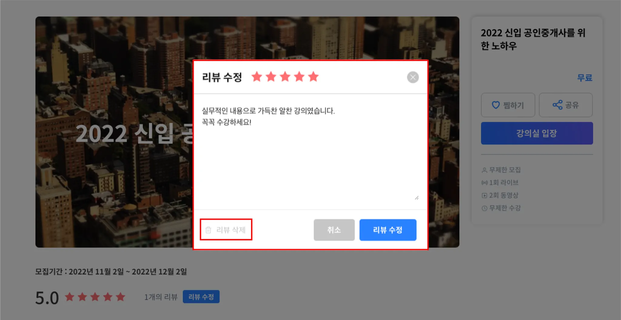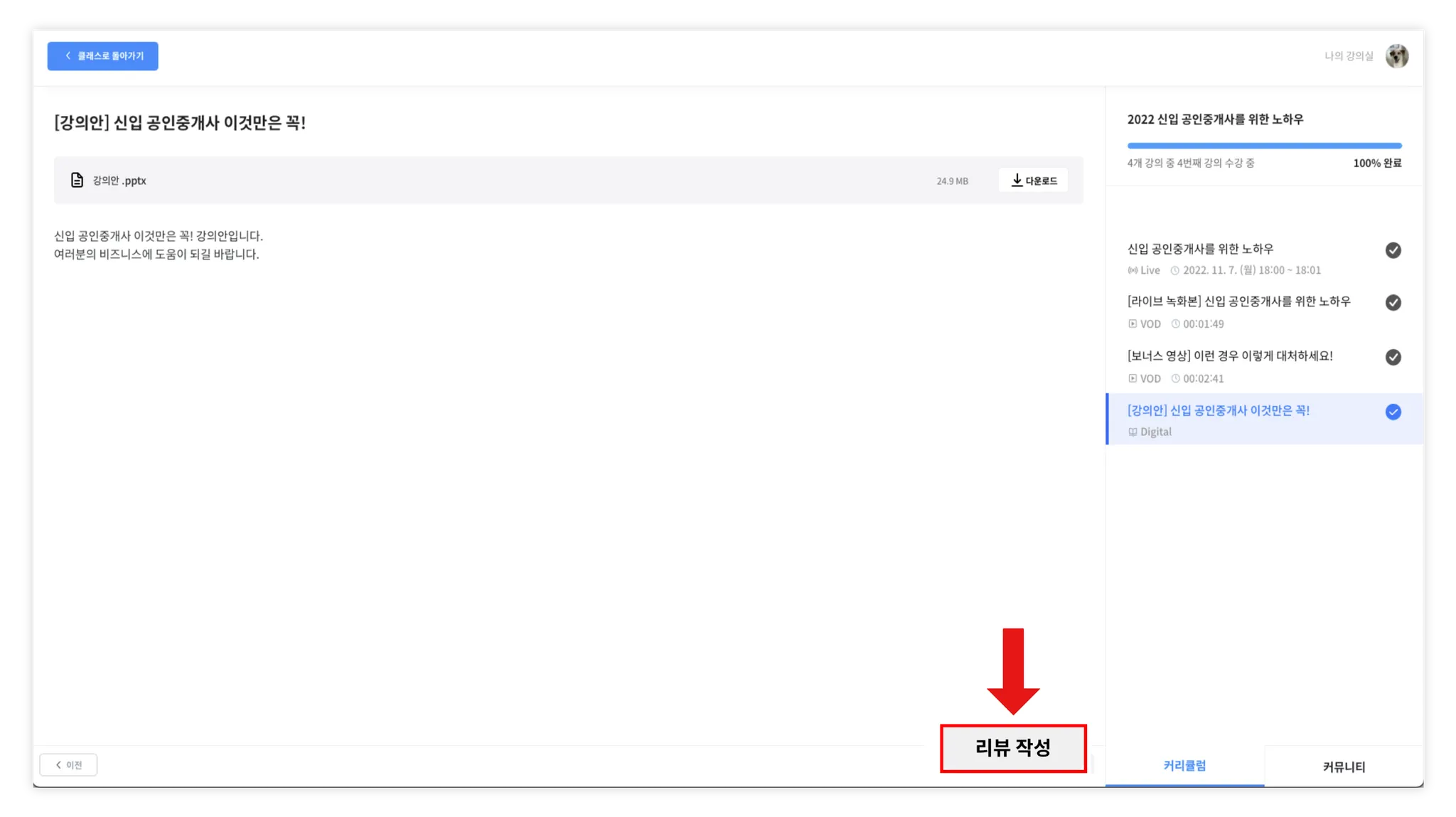 2-1. 수강 후 강의실에서도 리뷰를 작성하실 수 있습니다.