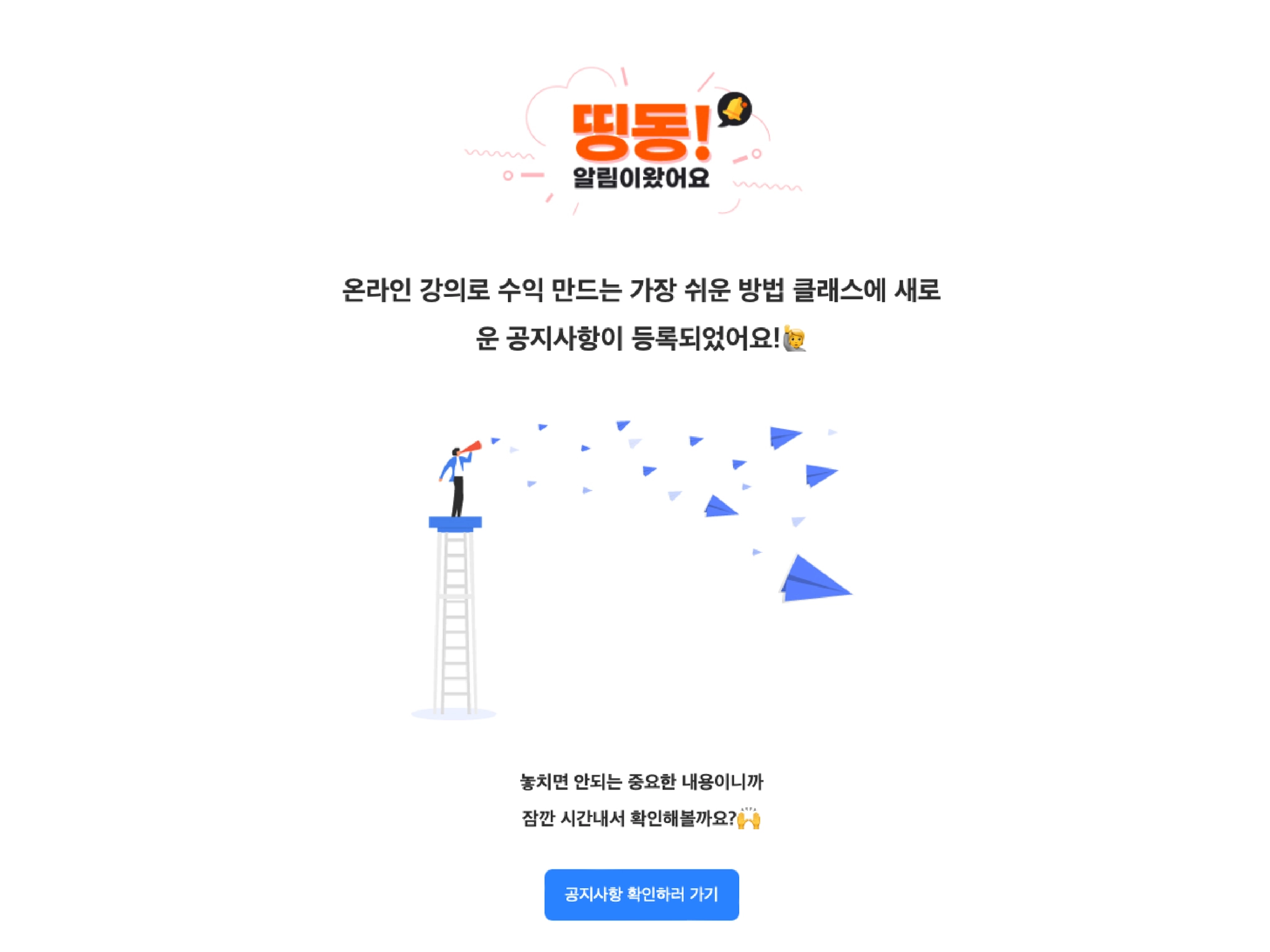 공지 및 댓글들은 메일로도 보내드려요! 놓치지 말고 확인해주세요